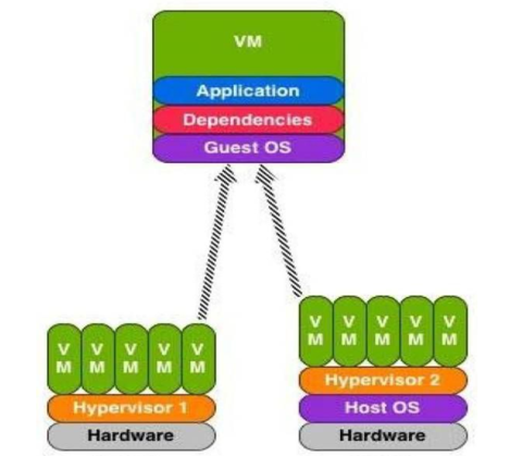 目的: 把一个大的服务器分解成多个小的个体,五脏俱全,各种应用分布在不同的个体里面,互不影响—利用率提高—镜像快速部署。